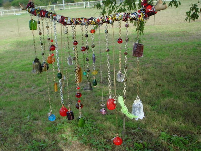 * Vēja zvani - par pamatu var ņemt kādu interesantu plastmasas trauku, vāciņu, kam izkausē caurumus un pašu, ja nepieciešams, nopūš ar aerosola krāsu (piemēram, metālisku). Par pamatni var izmantot jebko citu - sapītus zarus, koka riņķi, metāla kastes vāku u.t.t. (iesaku iedvesmoties no dažādiem jau gataviem vēju zvaniem). Piestāvošās lentēs, auklās iekarinam atbilstošus skanošos elementus - zvaniņus.. karotītes/dakšiņas, kādu rīvi, naglas, skrūvītes, izbijušu auskaru detaļas, vecas monētas (kas ir dāvanas saņēmējam tuvāka tēma - to arī iamantojam). Jo saderīgāki toņi un vēja zvanu tematika, jo labāk izskatās, tāpēc vēlams pamatnes elementu, auklas, skanošās daļas pēc krāsām saskaņot (heh - labi izklausās - skanošos saskaņot).  uzdāvini sev vai kādam mīļam cilvēkam @ 20:36 pomegranate: Iedvesmojos pati, lai saņemtos.. un iedvesmoju jūs:   Un, ja gadījumā nesanāk kā plānots, tad var izveidot "mājiņu pēc atombumbas sprādziena" (internetā tādas arī var atrast). Galvenais - taisīt, izmēģināt.. pašā procesā jau jābūt savai baudas devai. 6. Decembris 2009