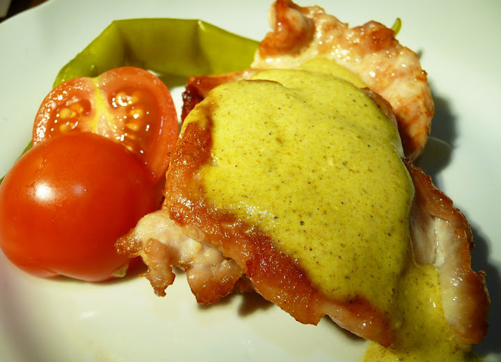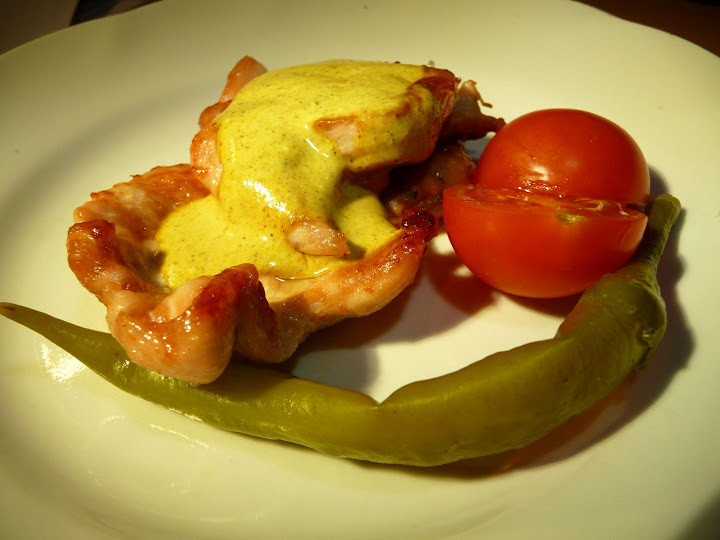 cepts šķiņķis ar karija mērci?