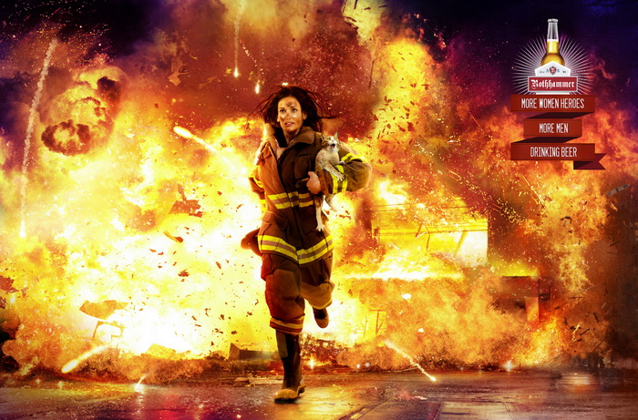 more women heroes, more men drinking beer