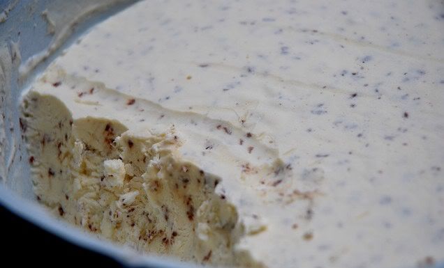 Vakar vakarā taisīju saldējumu It kā jau sanāca, šodien ēst to varēja tik ar kafijā mērcētu karoti, jo ļoti sasalis. Bet beigās jau pakļāvās manai gribai. Ļoti daudz iznāca, bet nekas. Ilgākam laikam pietiks. Tie brūnie ir šokolādes gabaliņi, ja kas.