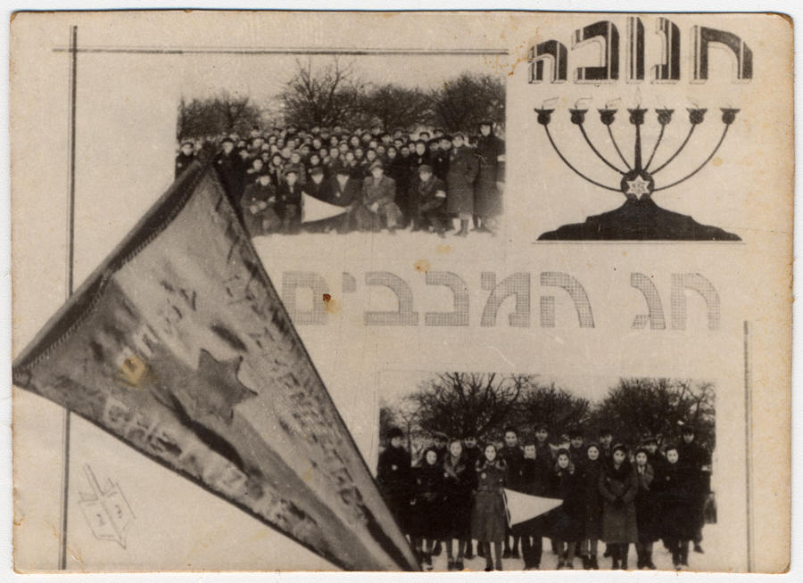 Jews in Poland- now mostly imprisoned in Nazi ghettos- celebrating Hanukkah indoors & in fear. Card from Lodz ghetto |